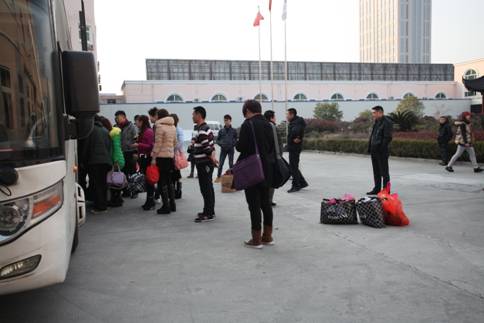 2015年2月13日这一天,公司宿舍楼下人头攒动,出门辛苦打工一年的兄弟今天终于可以回家了。与公司谈好的几辆大巴,一早就已经在公司宿舍楼下等候,车子里饮水机、电视、空调一应俱全,公司还特地关照大巴车公司一定要把车厢打扫的干净,就是为了让外来务工的兄弟们在回乡路上坐得更舒服些。